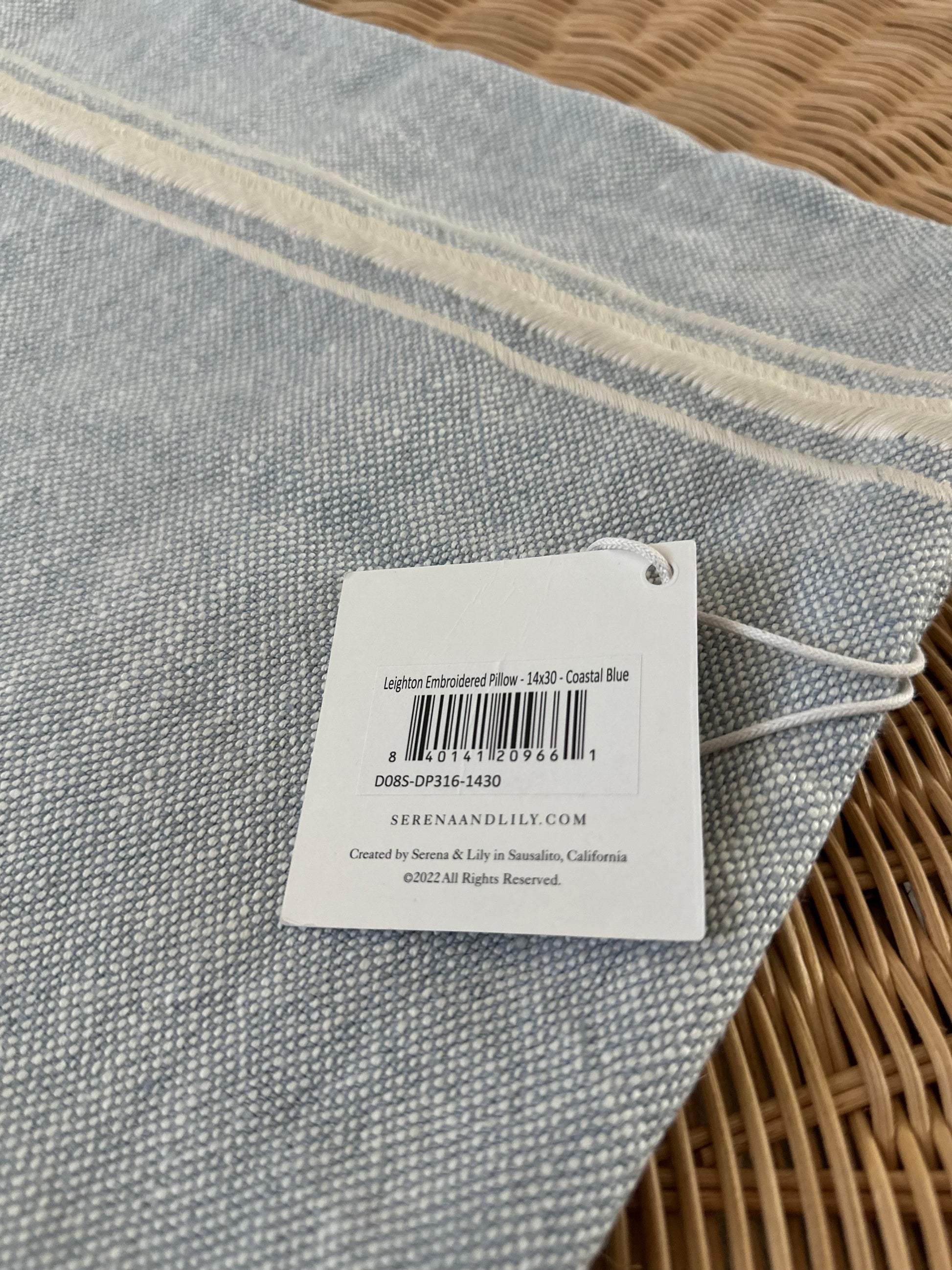 Leighton Pillow Cover (14”x30”)-Coastal Blue