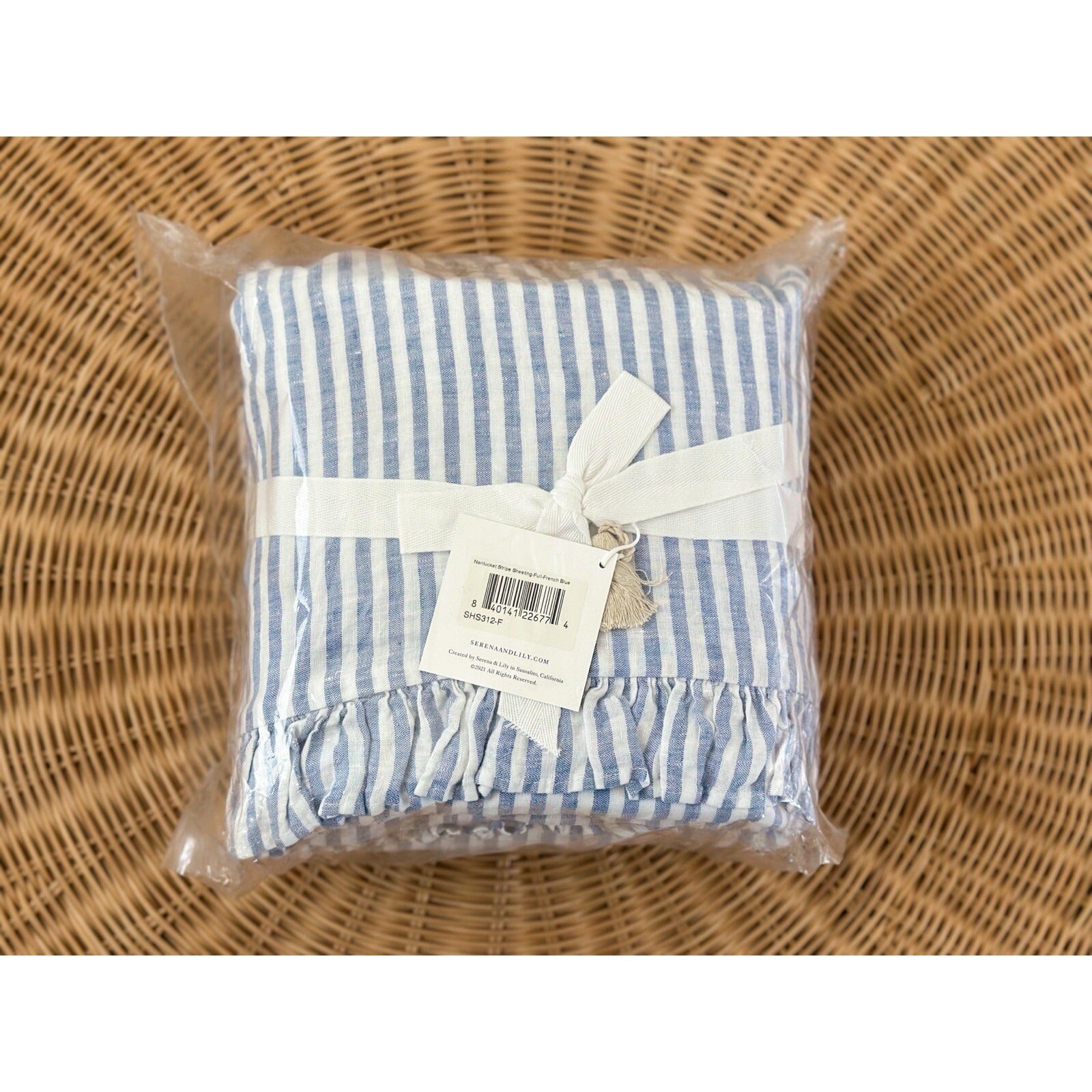 Nantucket Stripe Linen Sheet Set (Full)-Blue
