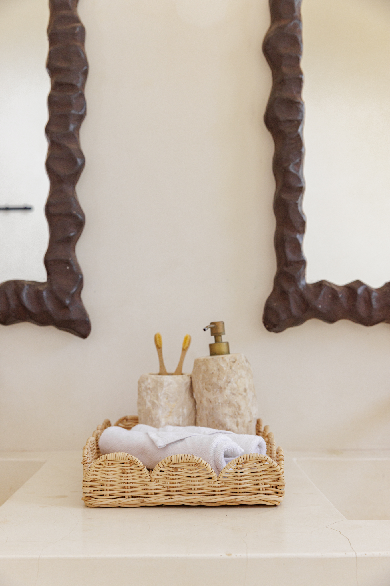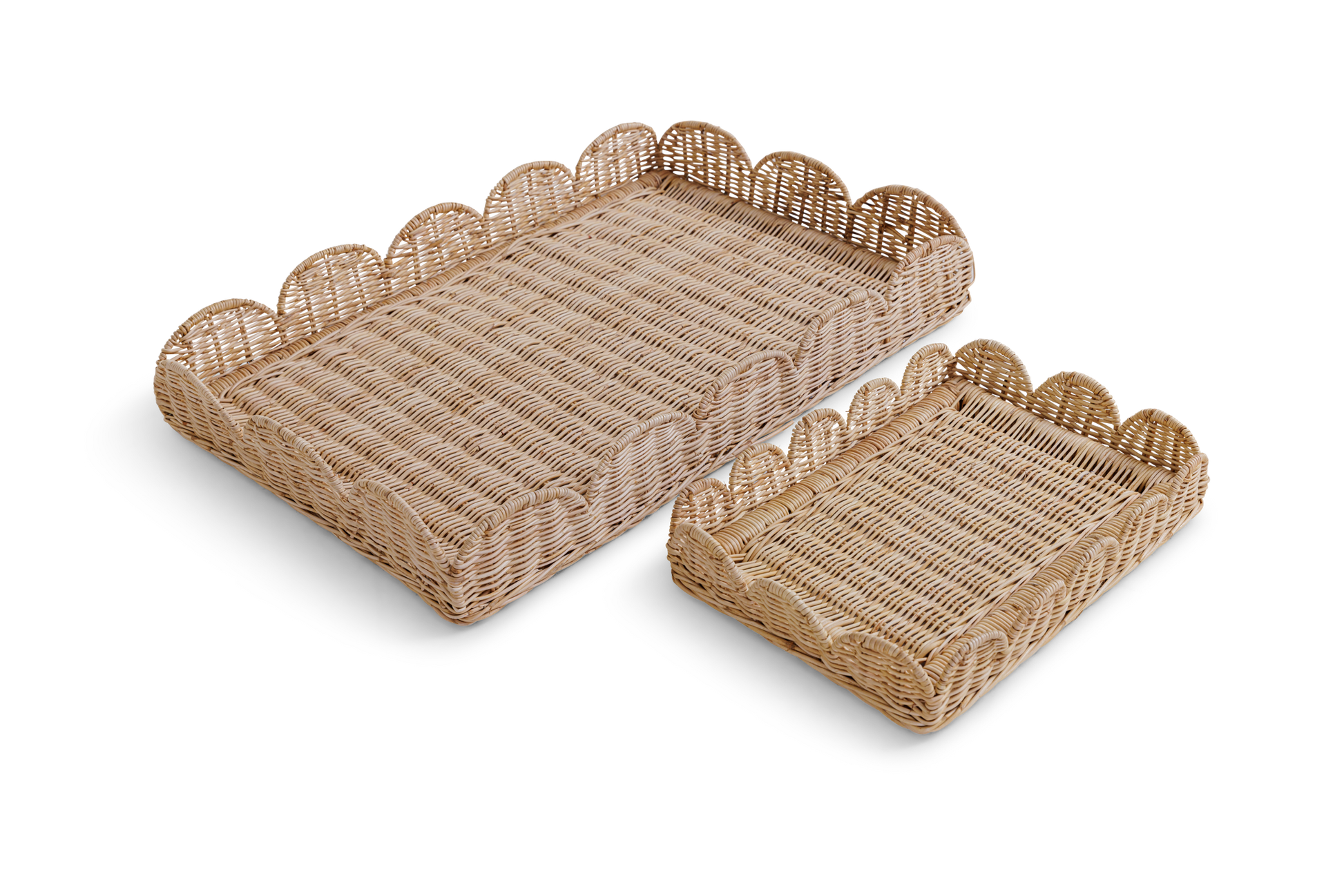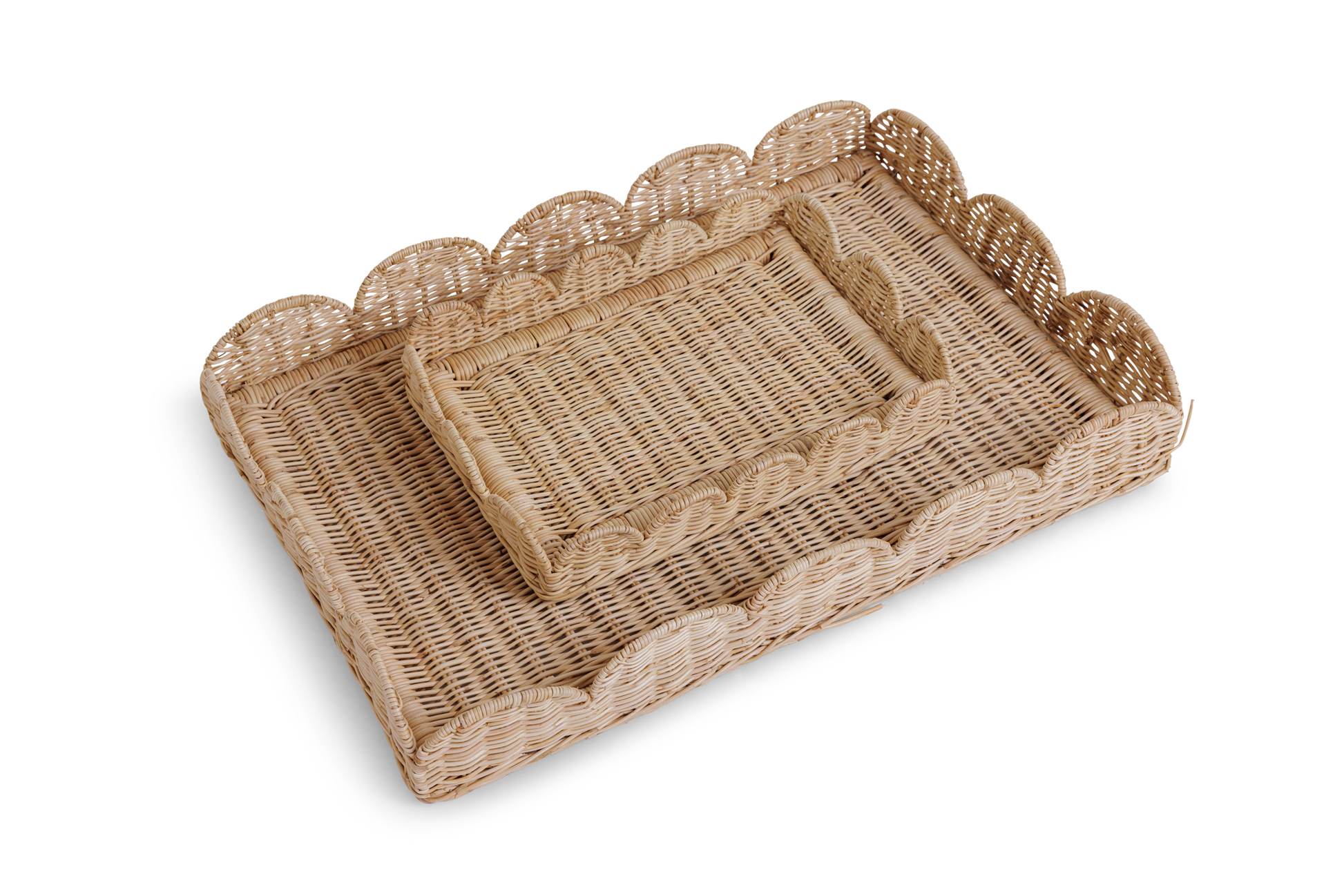 Introducing our Rectangular Scallop Trays, thoughtfully crafted in two sizes to suit your needs. These trays feature a handwoven wicker design and scalloped edges, making them the perfect addition to your home decor.